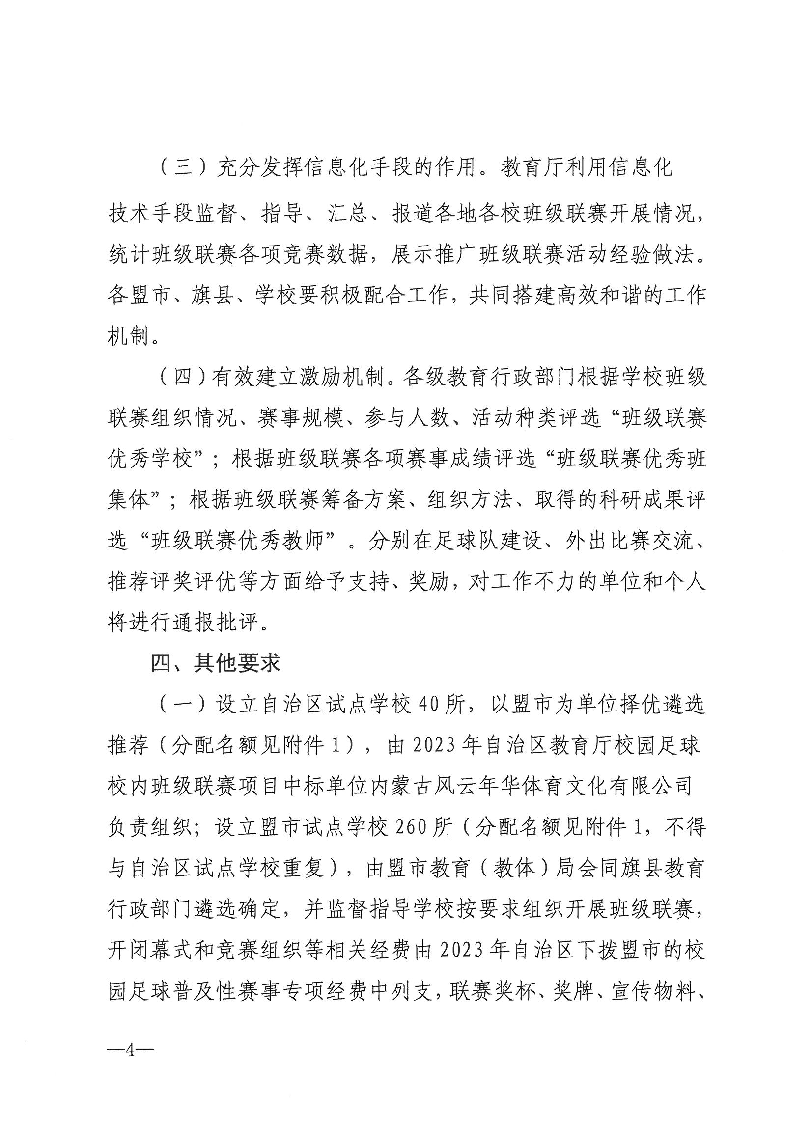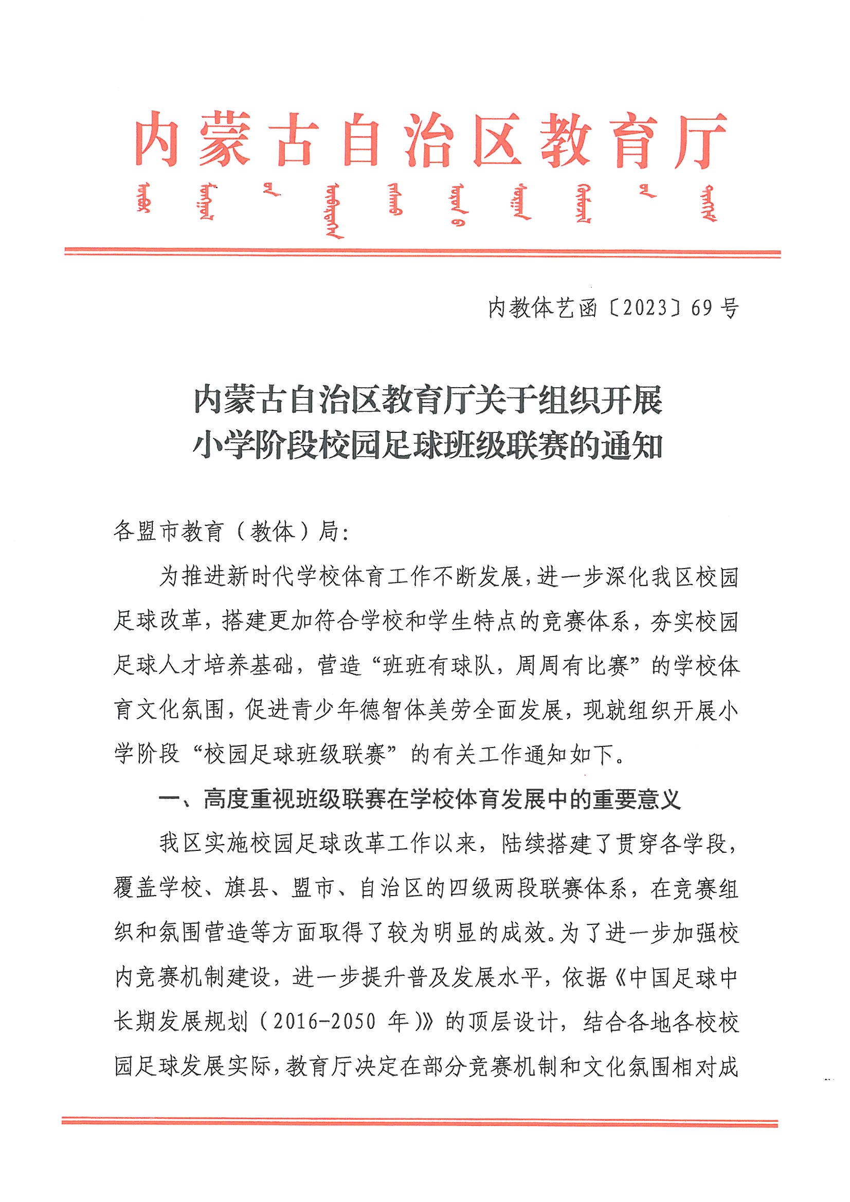 内蒙古自治区教育厅关于组织开展小学阶段校园足球班级联赛的通知